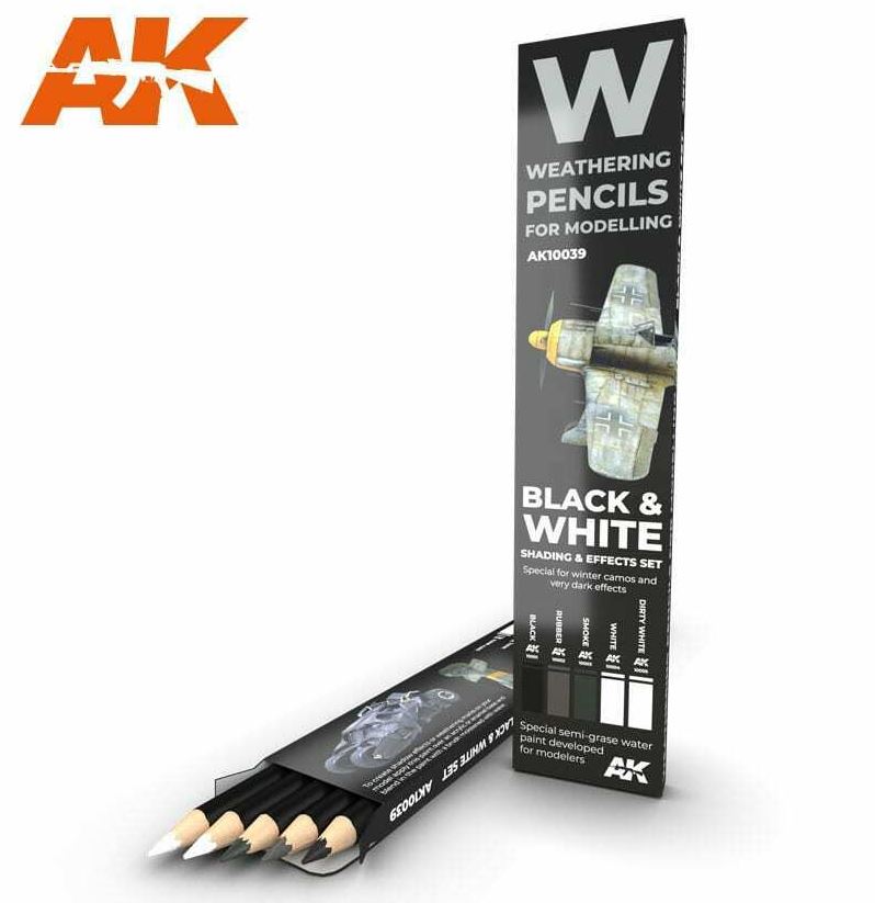 AK Interactive AK10039 Black & White Weathering Pencils Shading & Effects Set