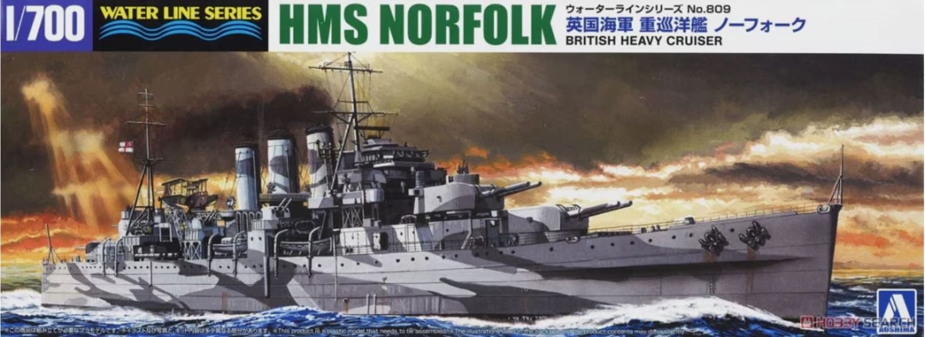 AOSHIMA 06744 1/700 WATERLINE ROYAL NAVY HMS NORFOLK HEAVY CRUISER MODEL KIT