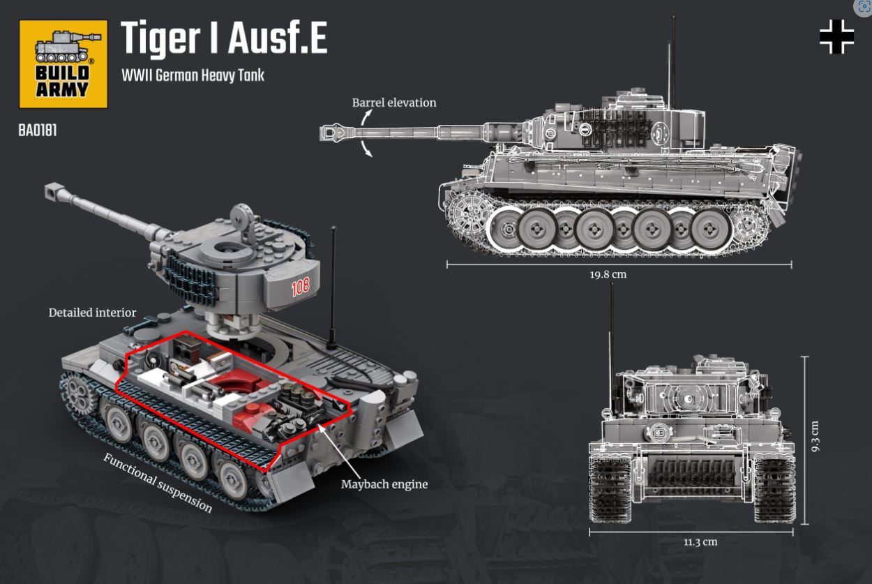 | 1/33 BRICK MODEL | BUILD ARMY 80181 1/33 GERMAN Tiger 1 Tank Ausf E Brick Models with Interior detail. |