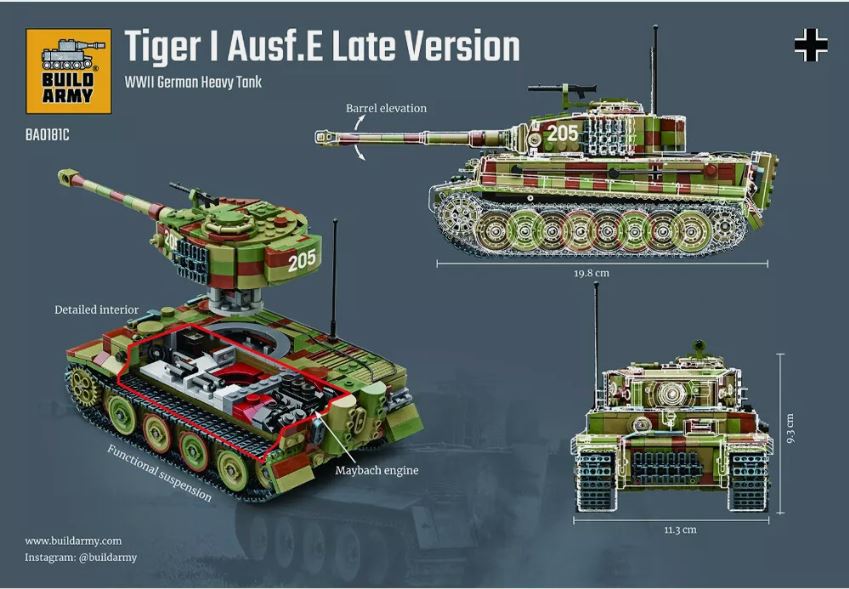 | 1/33 SCALE BRITCK MODEL | Build Army B0181C Tiger I Ausf.E Late Version 1:33 Brick Model 1157pcs |