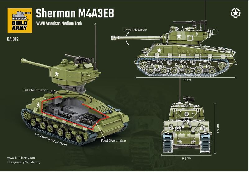 | 1/33 BRICK MODEL | BUILD ARMY 81002 1/33 USA M4 Sherman M4A3E8 Easy Eight Brick Model with Interior Detail |