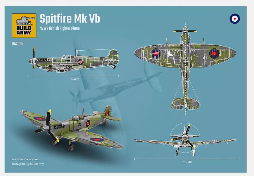| 1/30 BRICK MODEL | Build Army B2002 1/30 Supermarine Spitfire Mk Vb Fighter Plane Brick Model 500ps |