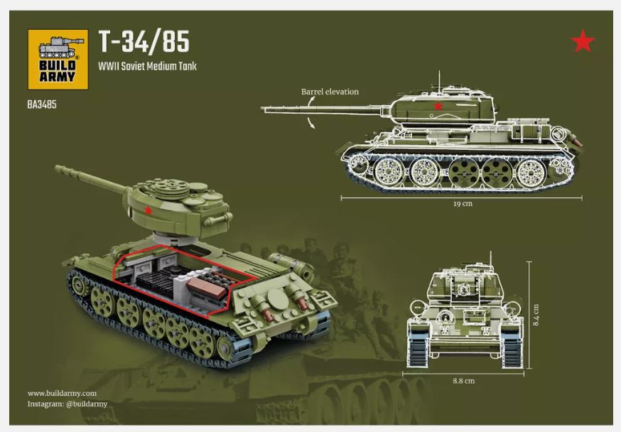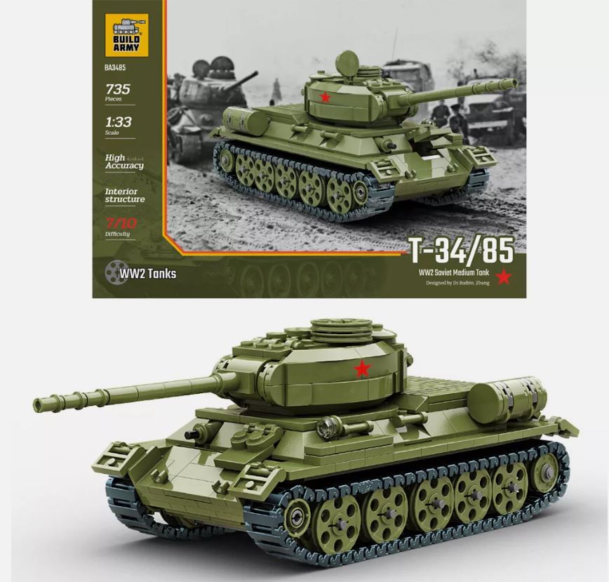 Build Army B3485 1/33 Soviet T-34/85 Tank Brick Model 735pcs quantity