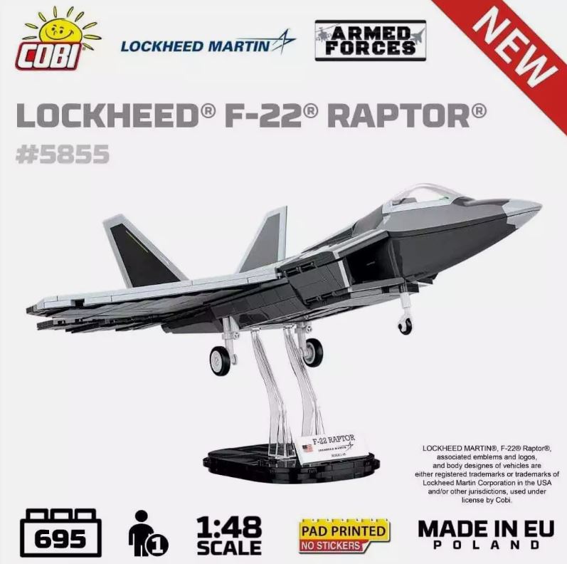 COBI-5855 1/48 Armed Forces Lockheed F-22 Raptor Model Plane Building Bricks 658Pcs