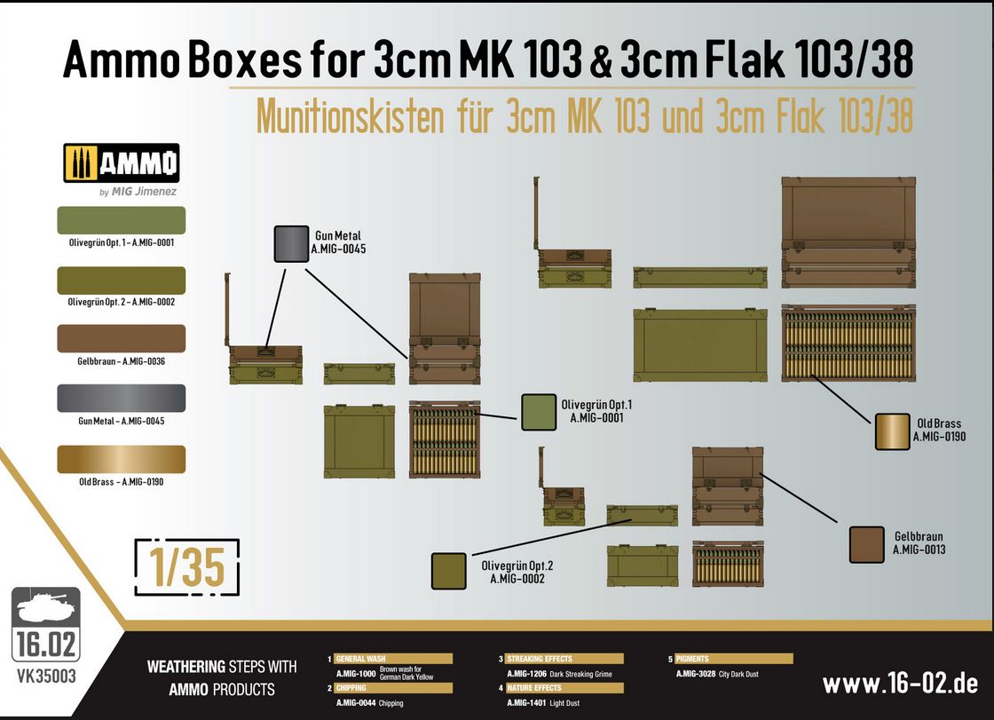 Custom scale 16.02 VK35003 1/35 Ammo Boxes for 3cm MK 103 & 3cm Flak 103/38
