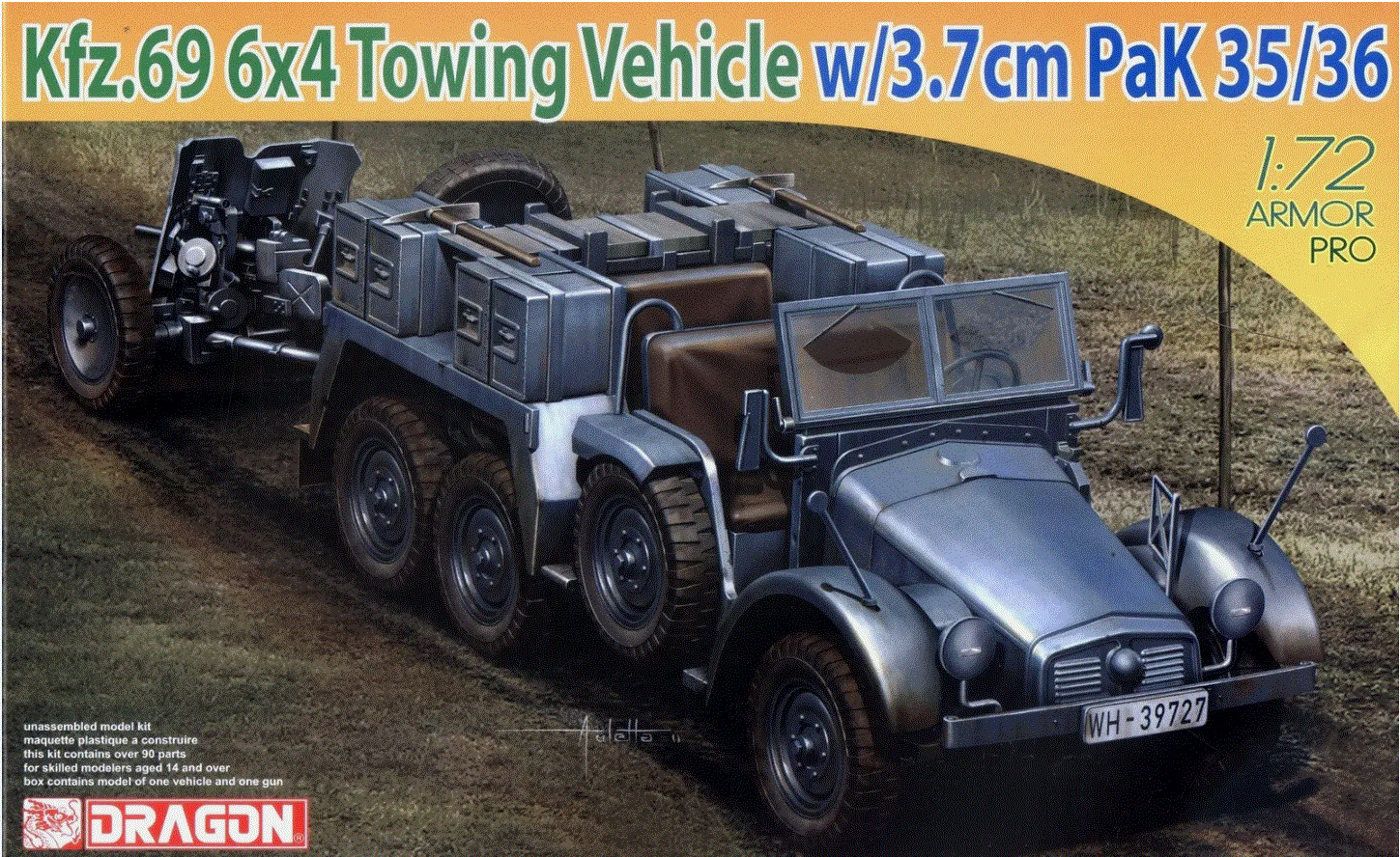 Dragon 7419 1/72 WWII German Kfz.69 6×4 Towing Vehicle w/3.7cm PaK 35/36