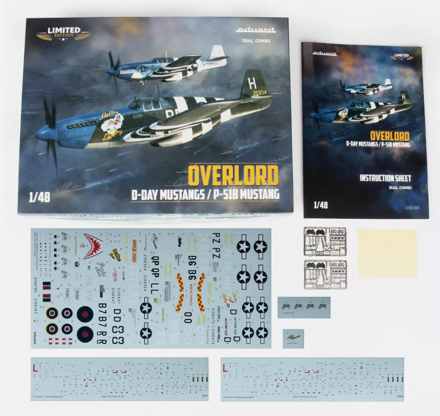 | 1/48 SCALE MODEL KIT | Eduard 11181 1/48 P-51B Mustang Overlord: D-Day Mustangs Dual Combo Model Kit |
