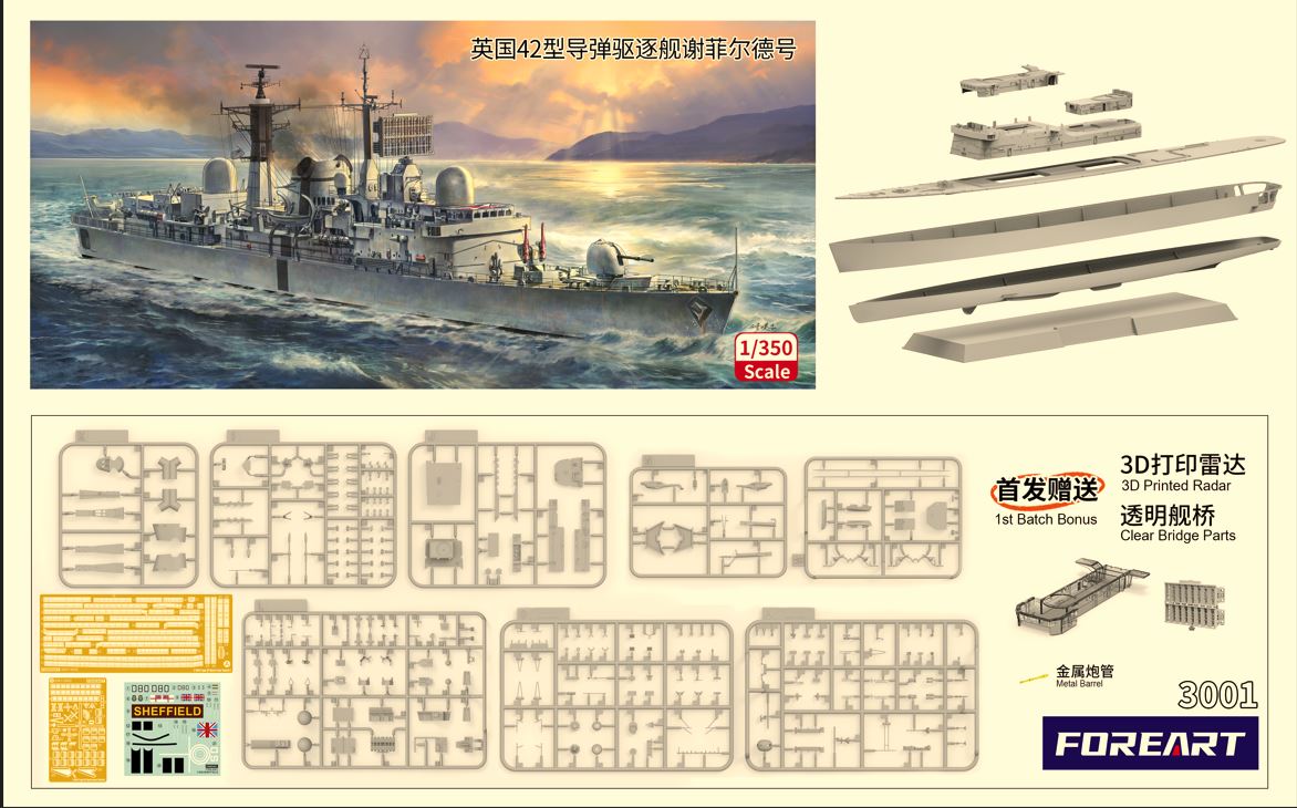 FORART FORE HOBBY 3001 1/350 HMS Sheffield Type 42 Guided Missile Destroyer Batch 1