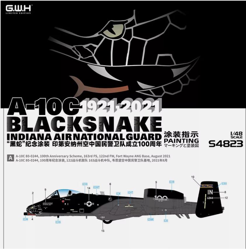 GREAT WALL HOBBY | S4823 | 1/48 | A10C Thunderbolt II Blacksnake Indiana ANG 1921-2021 | Plastic Model Kit