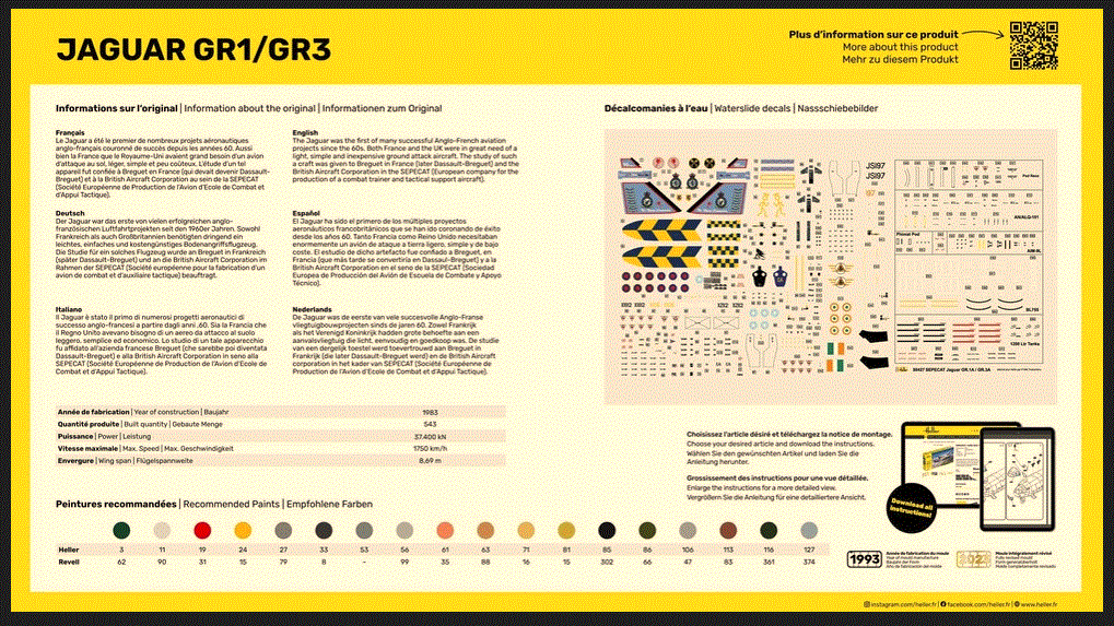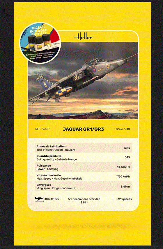 HELLER 56427 1/48 RAF Jaguar GR1/GR3 Gift Set with Five Decal Options.