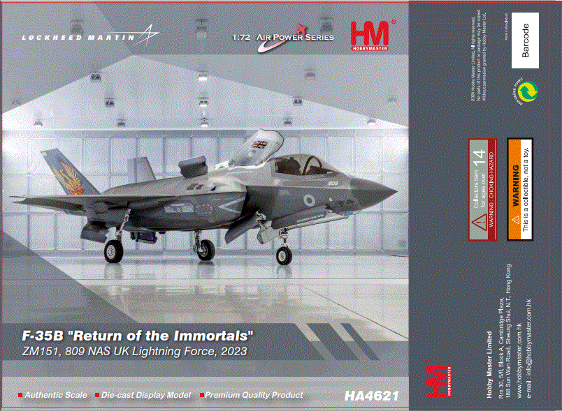 | Q/72 DIECAST MODEL | HOBBY MASTER HA4621 1/72 F-35B ZM-151 809 NAS UK LIGHTNING FORCE RETURN OF THE IMMORTALS |