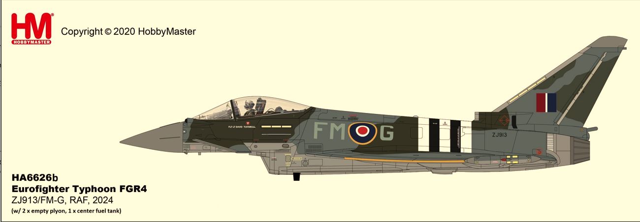 HOBBY MASTER HA6626B Royal Air Force Eurofighter Typhoon FGR4 FM-G Moggy 2nd Issue without Weapons, DUE SEPT 2025