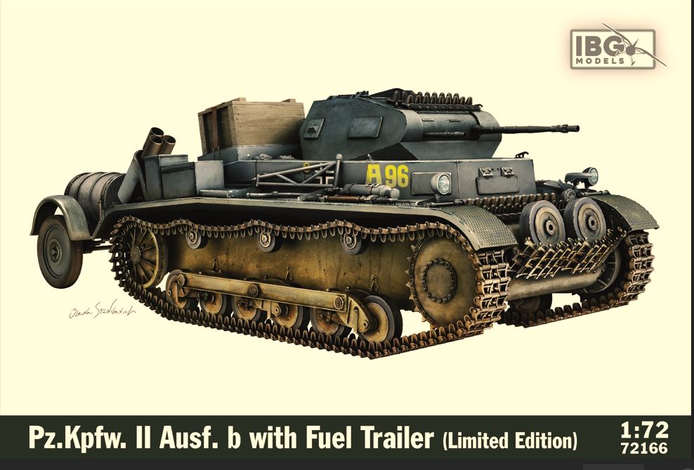 IBG 72166 1/72 Panzer II Pz.Kpwf.II Ausf.B w/Fuel Trailer Model Kit