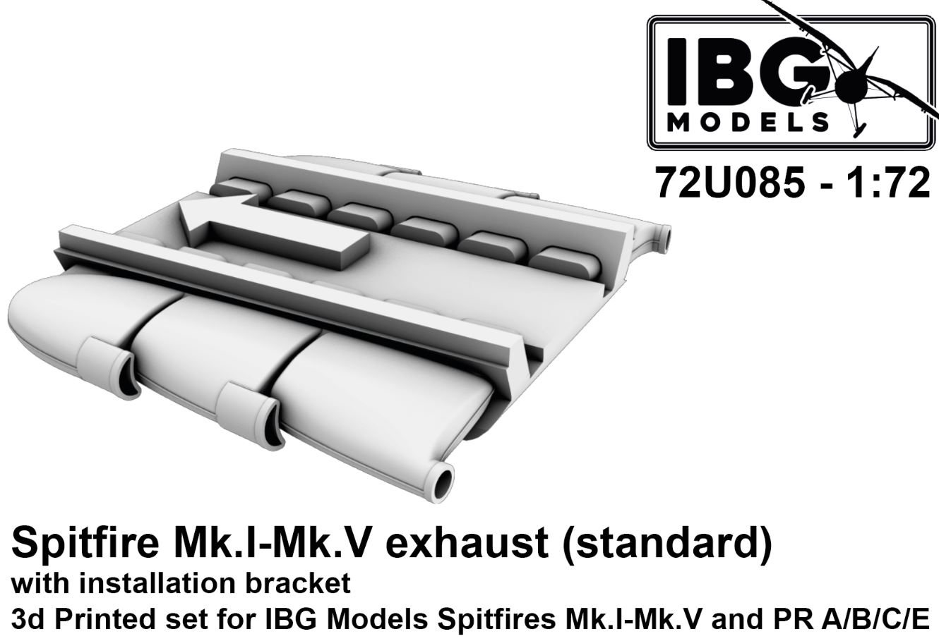 IBG 72U085 1/72 Spitfire Mk.I-Mk.V and PR Type A/B/C/E exhaust (standard) with installation bracket DUE AUGUST 2025