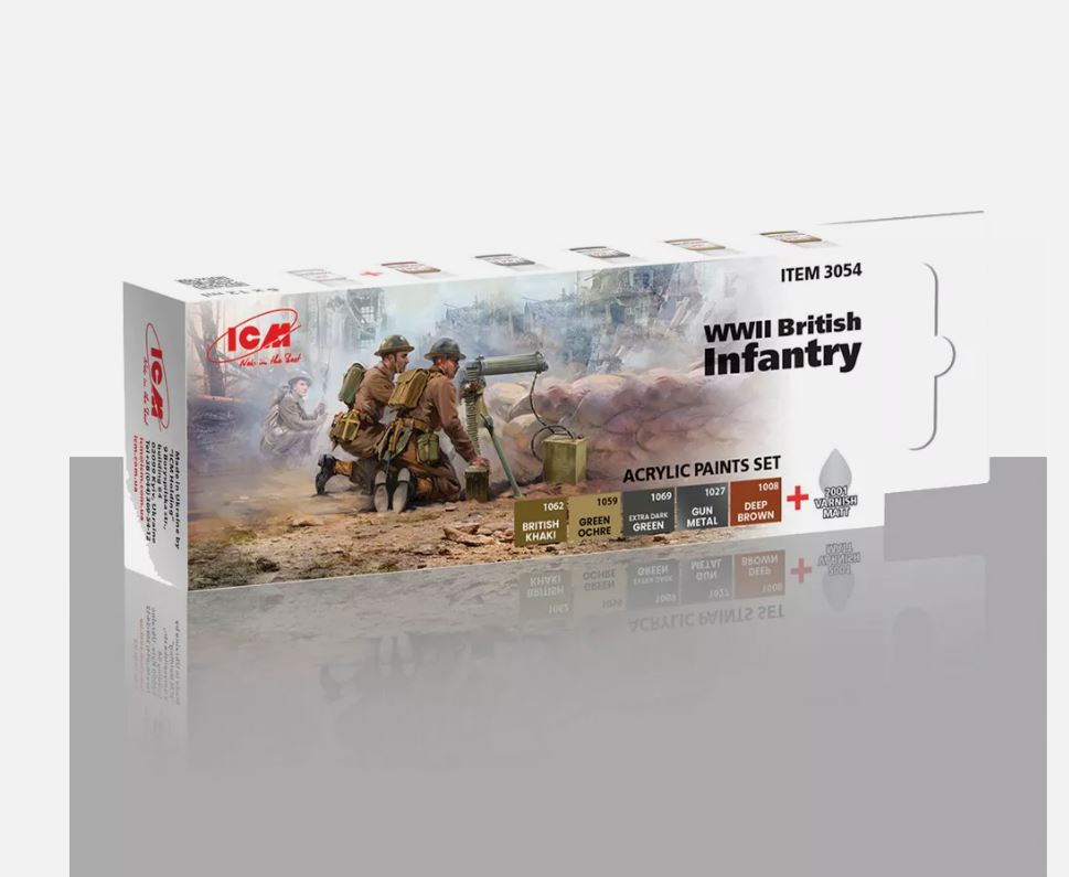 | PAINTS AND TOOLS | ICM 3054 WWII British Infantry Acrylic Paint Set 6 x 12ml Bottles |
