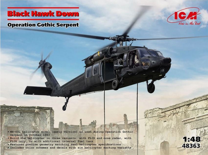 ICM 48363 1/48 Sikorsky UH-60 Black Hawk Down Operation Gothic Serpent Model Kit