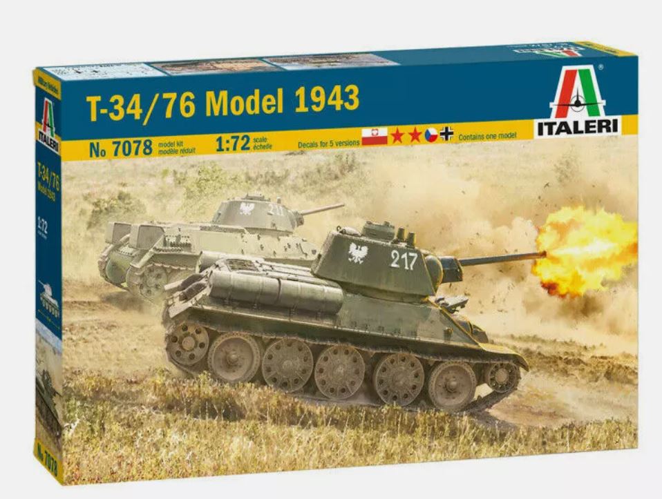 Italeri 7078 1/72 Soviet T-34/76 Mod 43 Tank Scale Kit