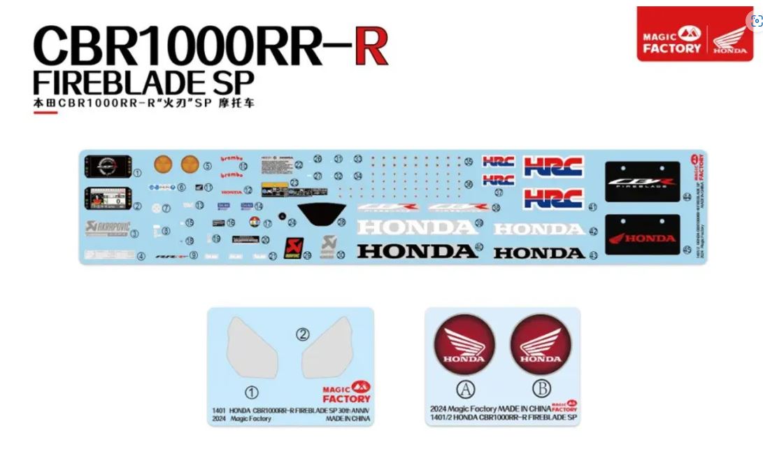 | 1/9 SCALE MODEL KIT | Magic Factory 1402 1/9 Honda CBR1000RR-R Fireblade SP |