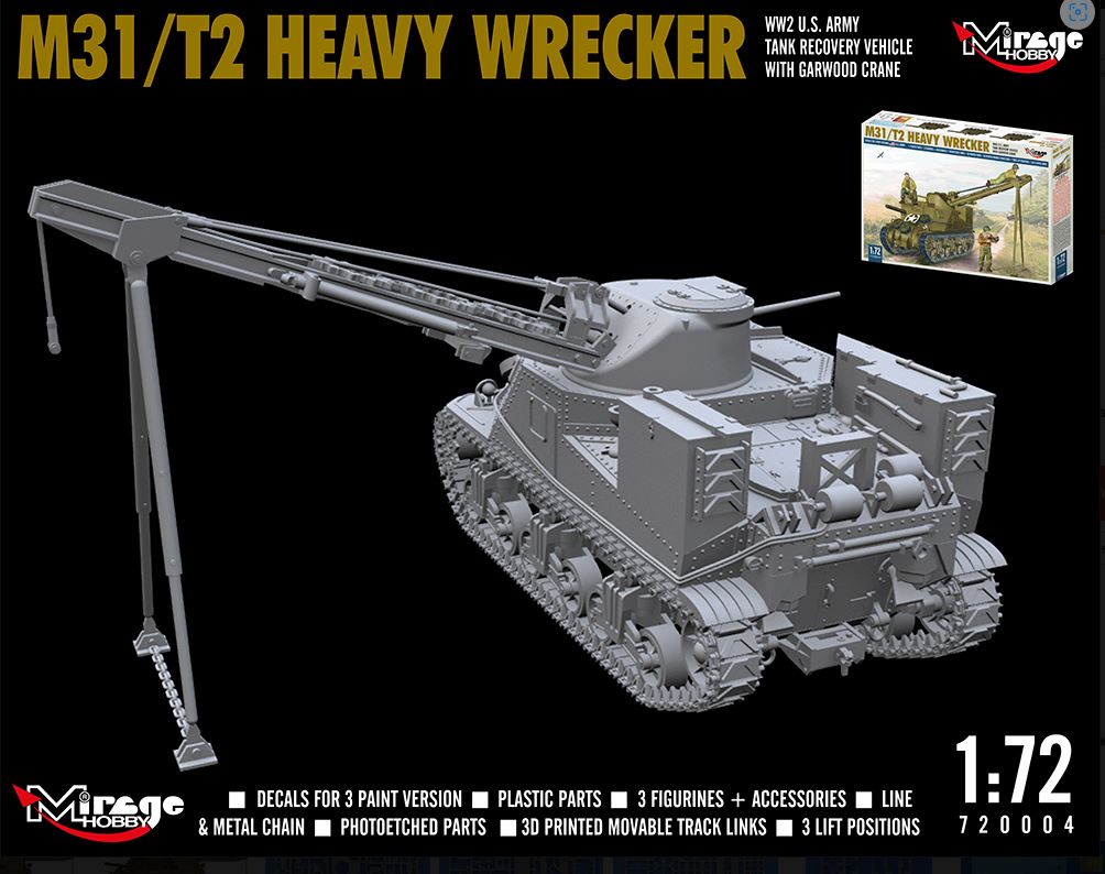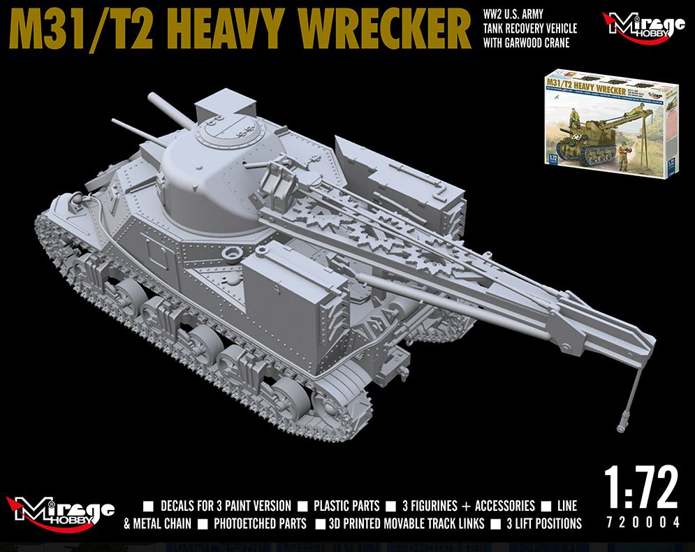 | 1/72 SCALE MODEL KIT | Mirage-Hobby 720004 1/72 WW2 US Army M31/T2 Heavy Wrecker Tank Recovery Vehicle with Crew |