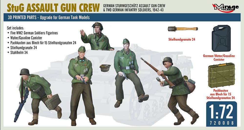 Mirage-Hobby 720008 1/72 3D Printed WW2 German StuG Assault Gun Crew with Infantry 1942/43
