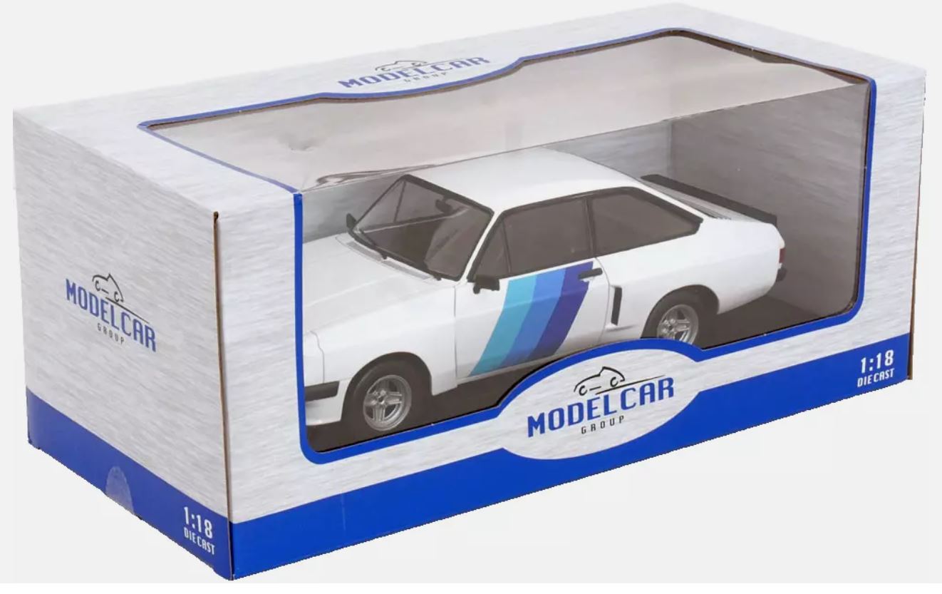 MODEL CAR GROUP 18351 1:18 1977 Ford Escort MK II RS 2000, X-Pack, White and Blue