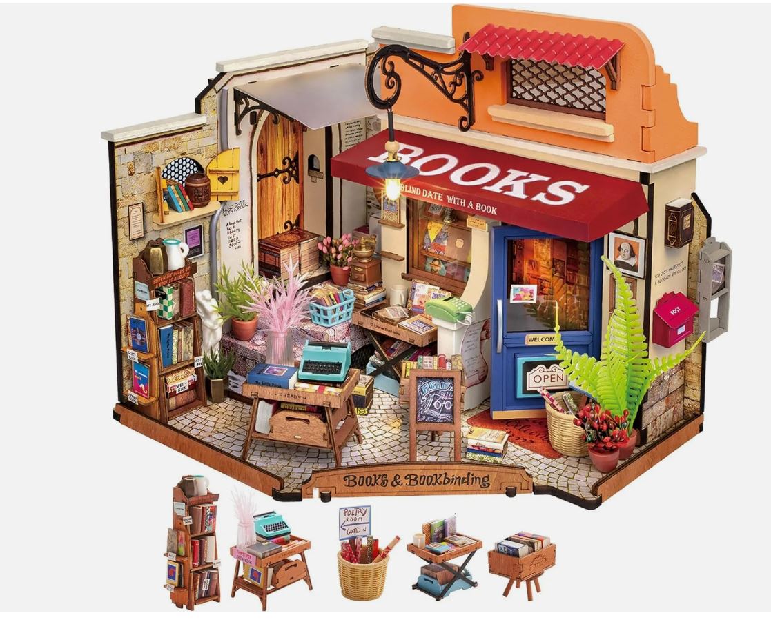 Rolife LED Miniature House Corner Bookstore DIY Wooden Craft Kit Gift DG164
