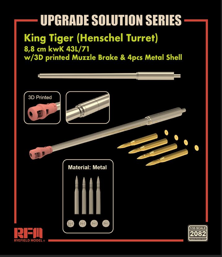 | 1/35 SCALE MODEL | RYE FIELD 2082 1/35 Upgrade Solution for 1/35 King Tiger Metal Barrel 88mm 43L/71 plus 4 Shells |