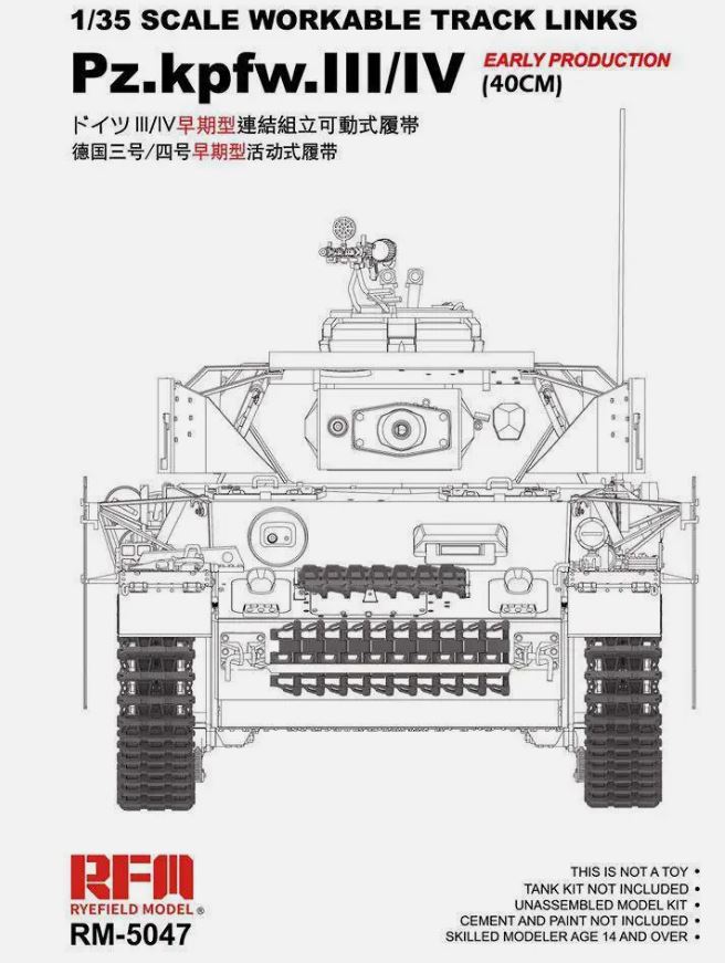| 1/35 SCALE MODEL KIT | Rye Field Model 5047 1/35 Tracks for Pz.iii/Iv.early Production 40cm New |