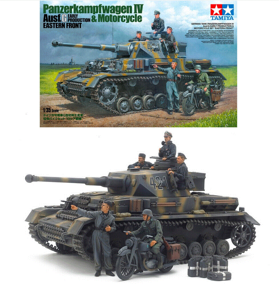Tamiya 25209 1/35 Panzer PzKpfw IV Ausf.G Early and Motorcycle Model Kit