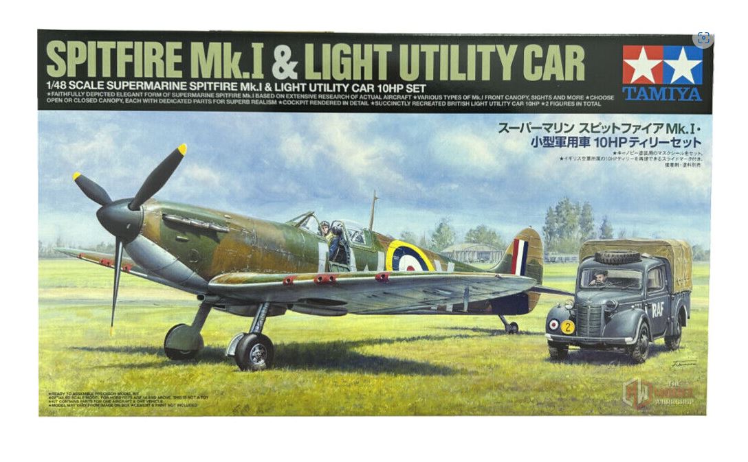 Tamiya 25211 1/48 Supermarine Spitfire Mk.I & Light Utility Car 10HP Set