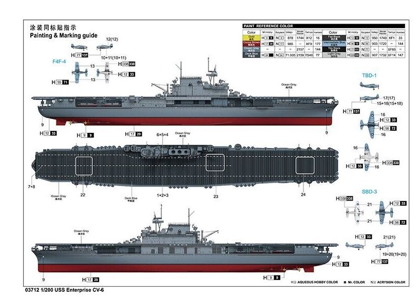 Trumpeter 1/200 03712 USS Enterprise CV-6 The Big E Aircraft Carrier HELL IN THE PACIFIC