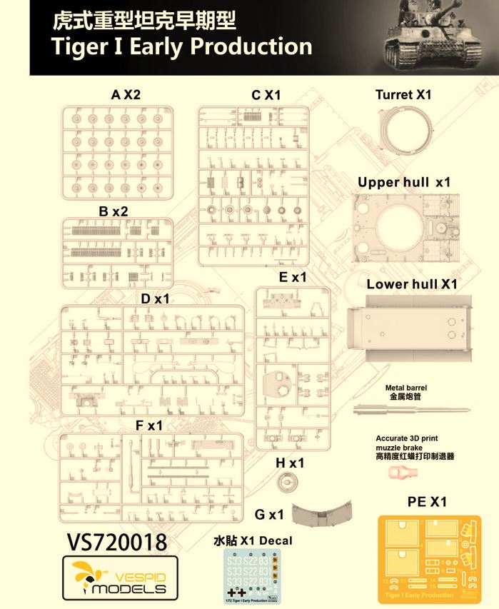 Vespid Models VS720018 1/72 Tiger 1 Tank Early Production with 3D Printed parts 88