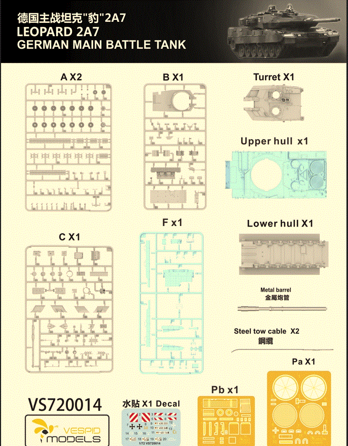 VESPID VS720014 1:72 SCALE LEOPARD 2A7 GERMAN MAIN BATTLE TANK